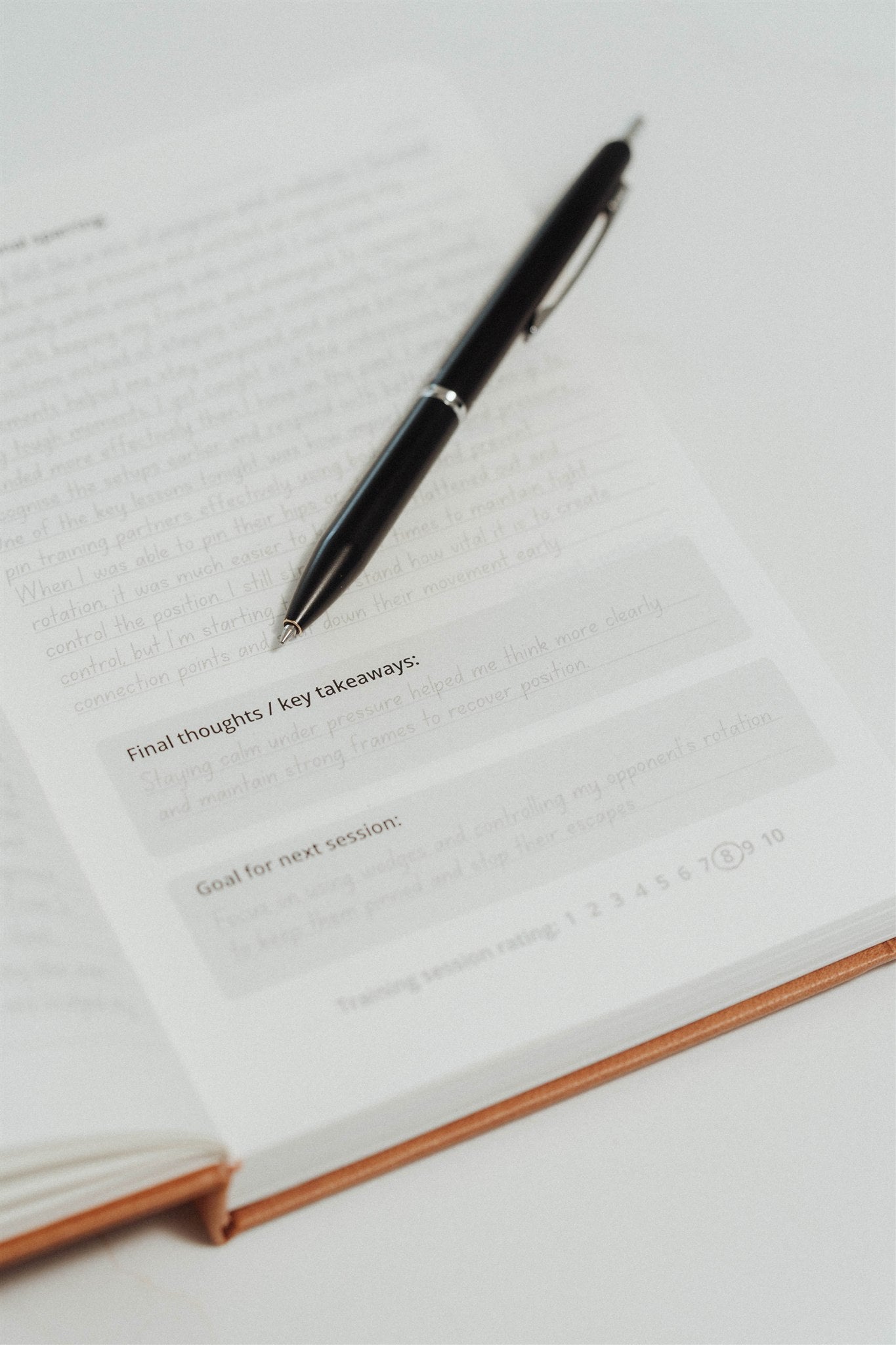 It is easy to get lost in the huge amount of moves in the sport but the journal's method of self reflection helps to keep me focused on my goals and to make compound improvements over time.